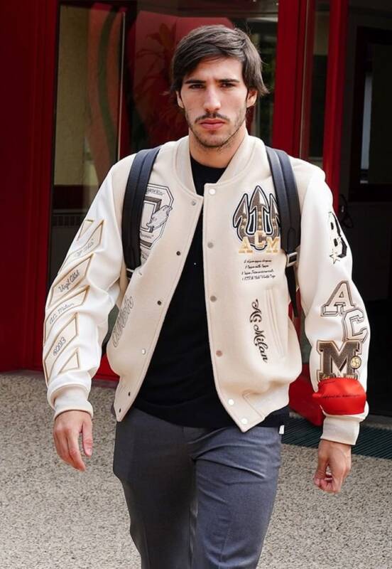 Logo após o anúncio de que Off-White seria o curador oficial de estilo e cultura do clube, o AC Milan estreou a primeira peça da parceria ao viajar para Londres em uma nova jaqueta da marca. O resto da roupa era composta por um simples tênis branco “Out of Office”, calça cinza e um pulôver preto de gola alta, garantindo que todas as atenções permanecessem naquela jaqueta.