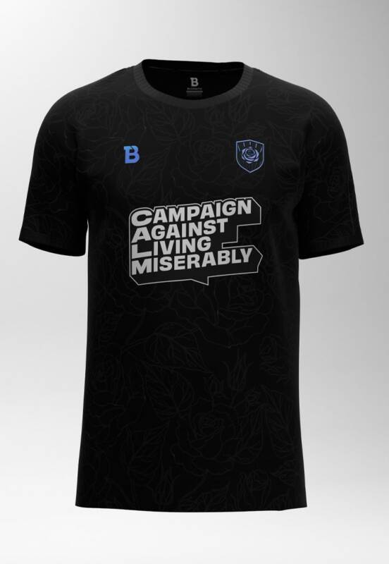 O motivo ‘shine a light’ é destacado na parte de trás da gola, enquanto a camisa é estampada com uma etiqueta de autenticidade de silicone celebrando a camisa de futebol da marca em ajuda ao CALM.