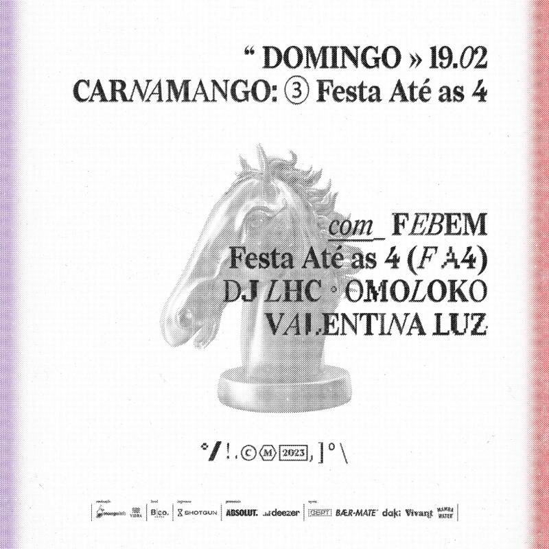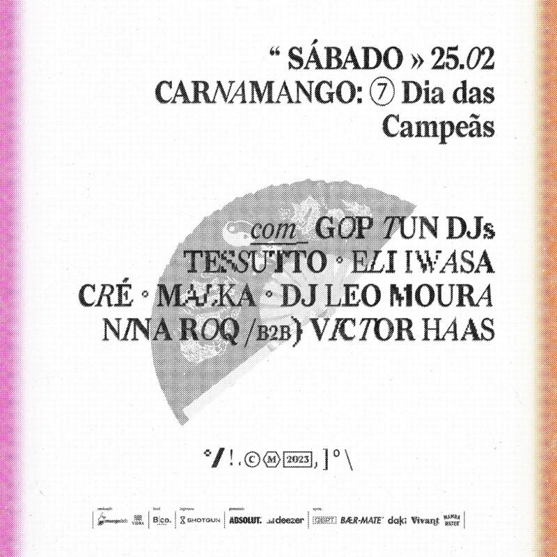 LINE-UP Yago Oproprio conv. AMABBI MC Caverinha conv. Slipmami LARINHX conv. Ebony Luísa Viscardi DJ A Glau b2b Badsista Crazy Jeff