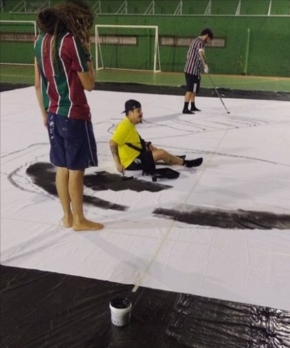 “… fui o responsável pela criação da arte e a pintura, com a ajuda de uma galera, mas a iniciativa partiu de um grupo de torcedores, fui convidado por eles, foram alguns dias de trabalho intenso, inclusive o Ricardo Exner, foi o responsável pela logística, ele é também o responsável pelo mosaico 3D do Escudo do Flu, pioneiro no Brasil.. “