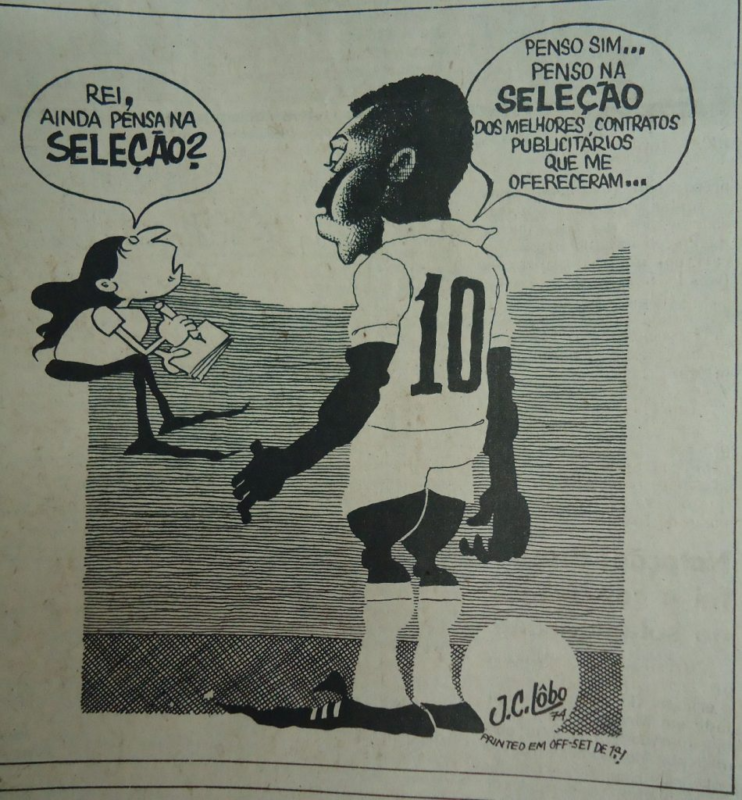 O jornal Cidade de Santos publicou uma série de charges contra Pelé, assinadas por J.C. Lôbo, algumas preconceituosas, apresentando o Rei do Futebol como vendedor de refrigerante no estádio, por exemplo. “Foram muitas charges e comentários racistas. O Pelé querer contribuir para a sociedade como empresário, no fundo a interpretação é essa: o lugar do Pelé é no campo jogando bola, uma maneira de designar o lugar do negro na sociedade”, opinou Florenzano.
