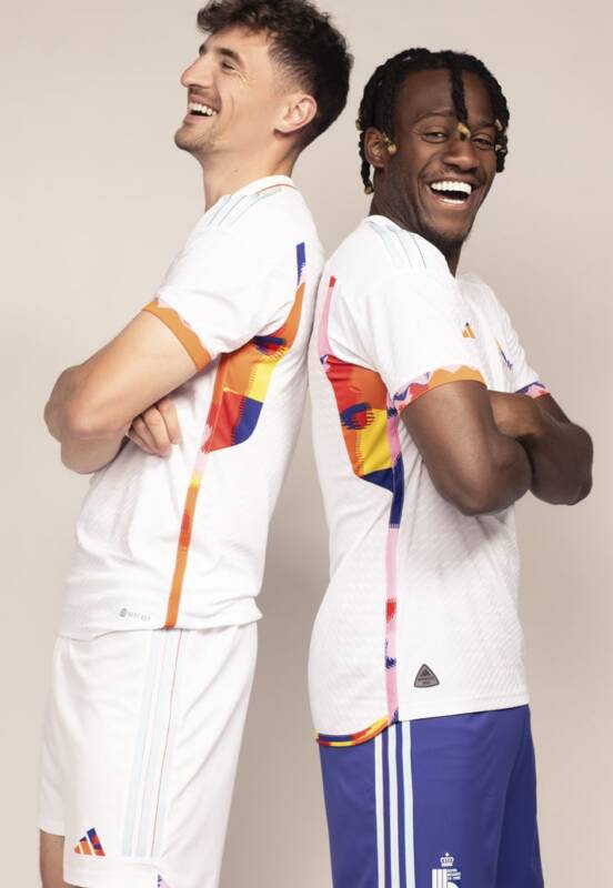 Com a intenção de fazer uma declaração positiva e divertida de AMOR na Copa do Mundo 2022, a Bélgica revelou sua nova camisa reserva que será utilizada no Qatar. Feito pela adidas, o kit chega como a segunda parte da colaboração exclusiva da Royal Belgian Football Association (RBFA) com o Tomorrowland, trazendo cores vivas e ousadas inspiradas no festival de música.