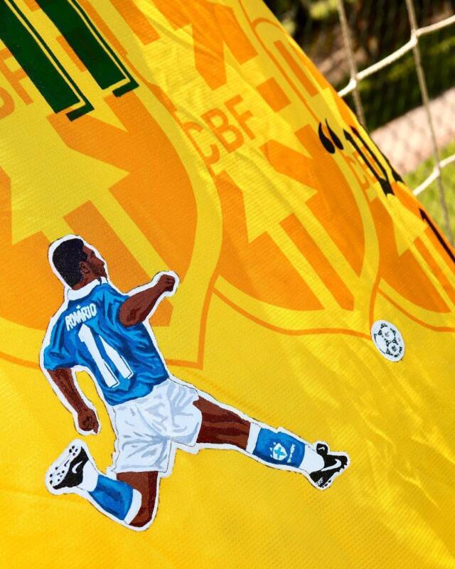 Pras especiais, escolhi o que para mim são os 5 lances mais marcantes em copas, busquei os modelos das camisas usadas nesses lances e, baseado na pintura realista somada a outras técnicas como serigrafia (de maneira nada convencional) e costura, retratei esses lances nas camisas. São apenas 5 unidades. Os lances são: