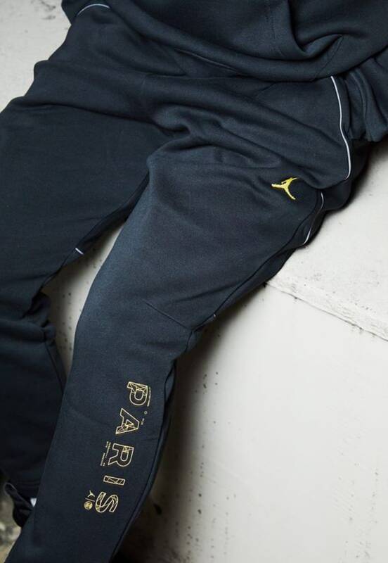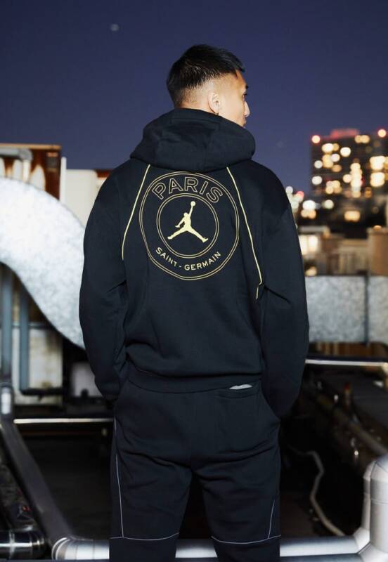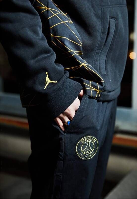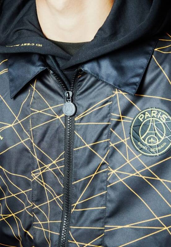 Esta nova coleção de roupas é composta por uma jaqueta, calça de corrida, moletons e camisetas que chegam em uma combinação de tons de preto, dourado e amarelo. O preto é a cor base da maioria das peças, com um padrão geométrico de linhas douradas sobrepondo certos itens, como uma jaqueta com zíper e um moletom, e se estivéssemos apostando nas pessoas, apostaríamos nosso último dólar nesse visual estará em uso para o quarto kit 22/23 da marca Jordan do PSG.